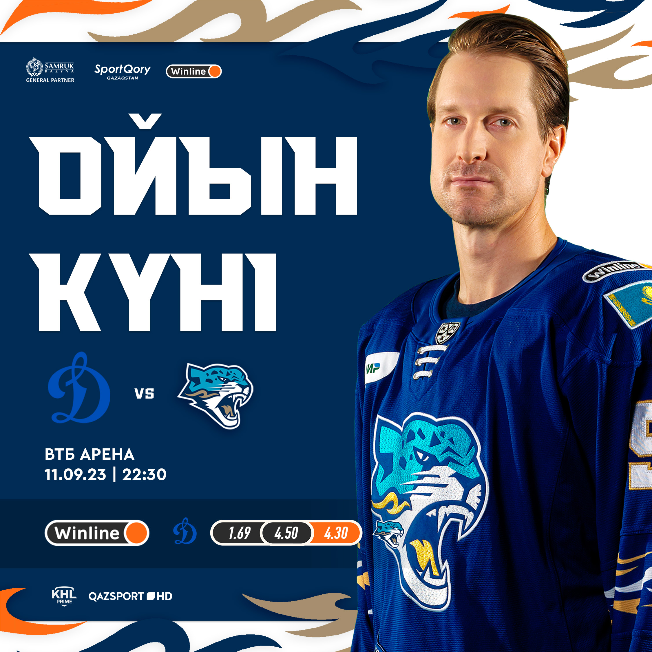 Прямая трансляция будет доступна на телеканалах KHL Prime и Qazsport.